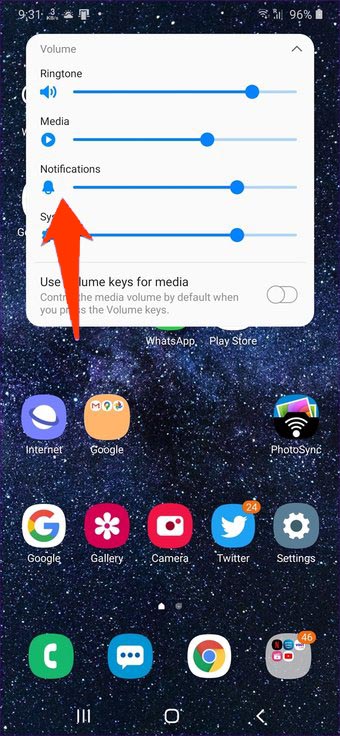 Pero si es un usuario de Samsung, puede disfrutar de la función de un control de volumen separado para las notificaciones. No juzgue mal el sonido de notificación con el volumen del tono de llamada en los teléfonos Samsung.