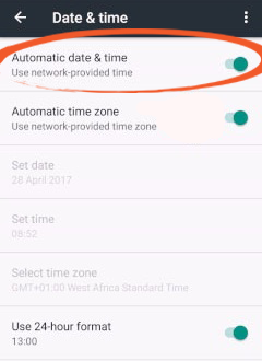 • Habilitado la fecha y hora automáticas. Asegúrese de que la hora y la fecha de su teléfono sean correctas.