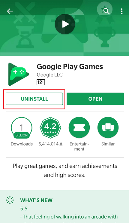 Si sus Google Play Games no funcionan, pruebe la solución más simple, simplemente reinstale la aplicación Google Play Games.