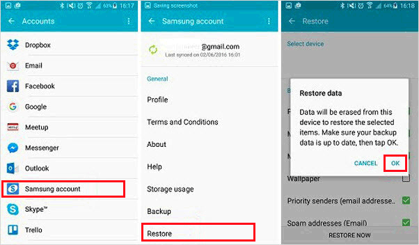 Si son usuarios de teléfonos Samsung, también pueden sufrir problemas con la pantalla rota y sus contactos pueden perderse. Entonces, en esta situación, si ha utilizado una cuenta de Samsung para hacer una copia de seguridad de sus cosas, le permitirá restaurar los contactos.