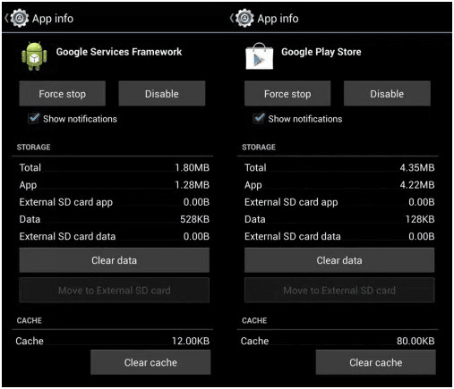 - Ahora repita el mismo proceso para borrar los datos y el caché de los servicios de Google Play