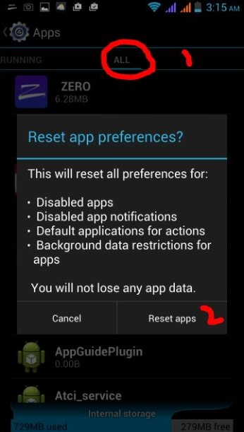 • Primero, vaya a Configuración> Administrador de aplicaciones / Aplicaciones> Más> Restablecer preferencias de aplicaciones> Restablecer aplicaciones
