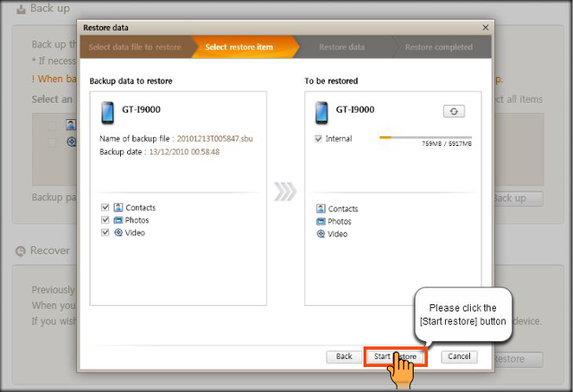 Método 2: Cómo restaurar enjugó Galaxy Note 10/10 + Uso de Samsung Kies