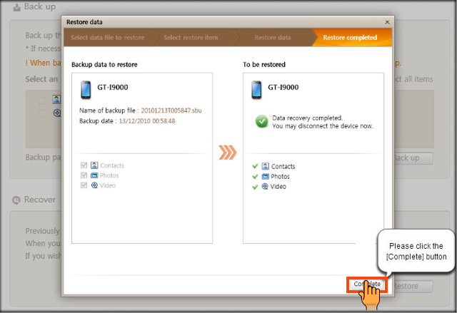 Paso 5: Después de restaurar todos los datos, toque la opción Completar